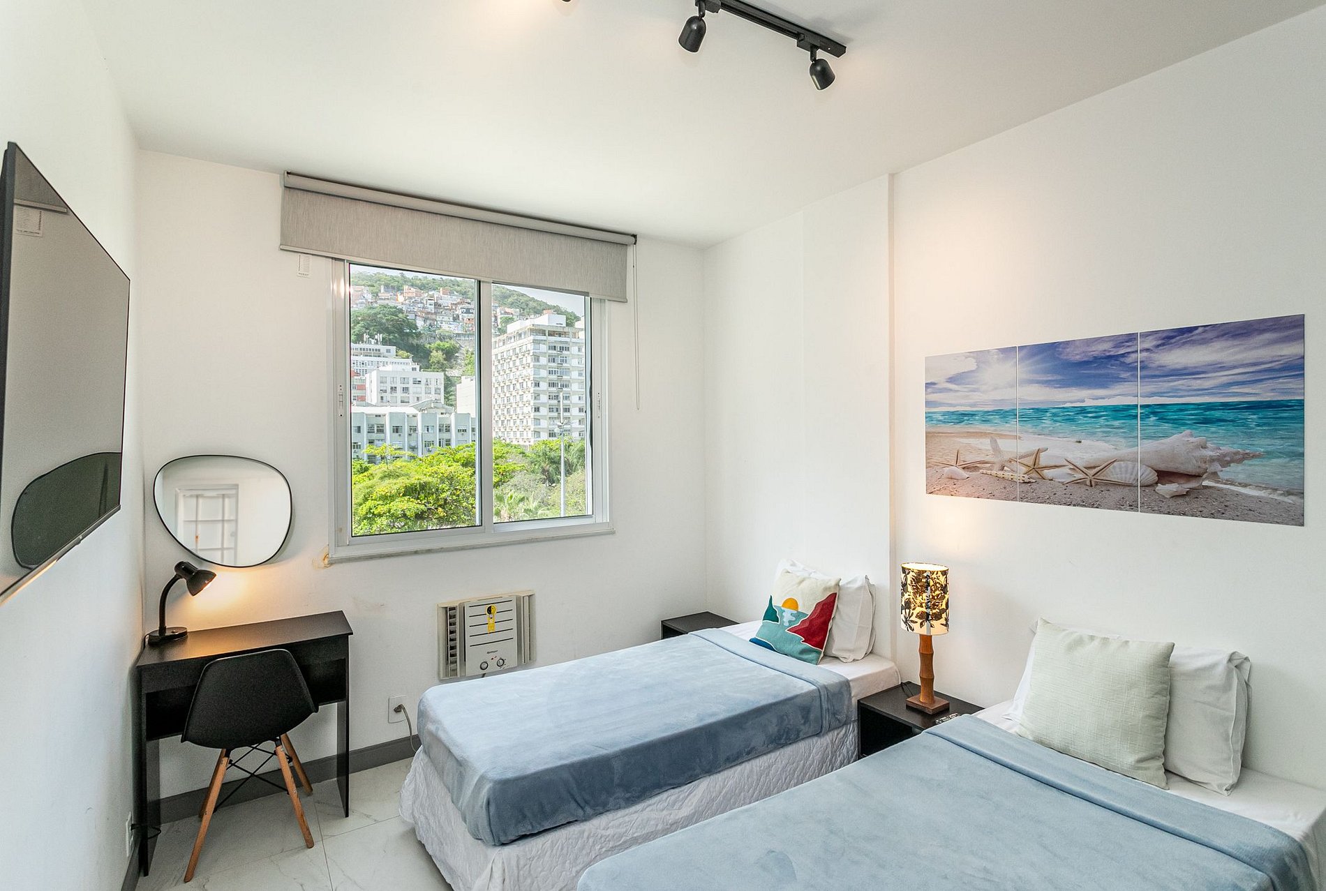 Apartamento recém reformado por arquiteto à apenas 50 metros da praia de Ipanema e de todas as comodidades que o bairro oferece. Imóvel composto de suíte com vista lateral para o mar e com banheira de hidromassagem, cama Queen e TV Smart para que o hóspede conecte o seu próprio streaming. Segundo quarto com duas camas de solteiro e espaço para trabalho. Belíssimo banheiro com excelente chuveiro. Na sala você encontrará um confortável sofá e uma televisão também Smart, além uma mesa de refeições para 4 pessoas. Cozinha completamente montada com fogão, forno, micro-ondas e geladeira. Você estará a poucos passos da praia mais famosa do Brasil, supermercado, metrô e das charmosas lojas de Ipanema. Imperdível!