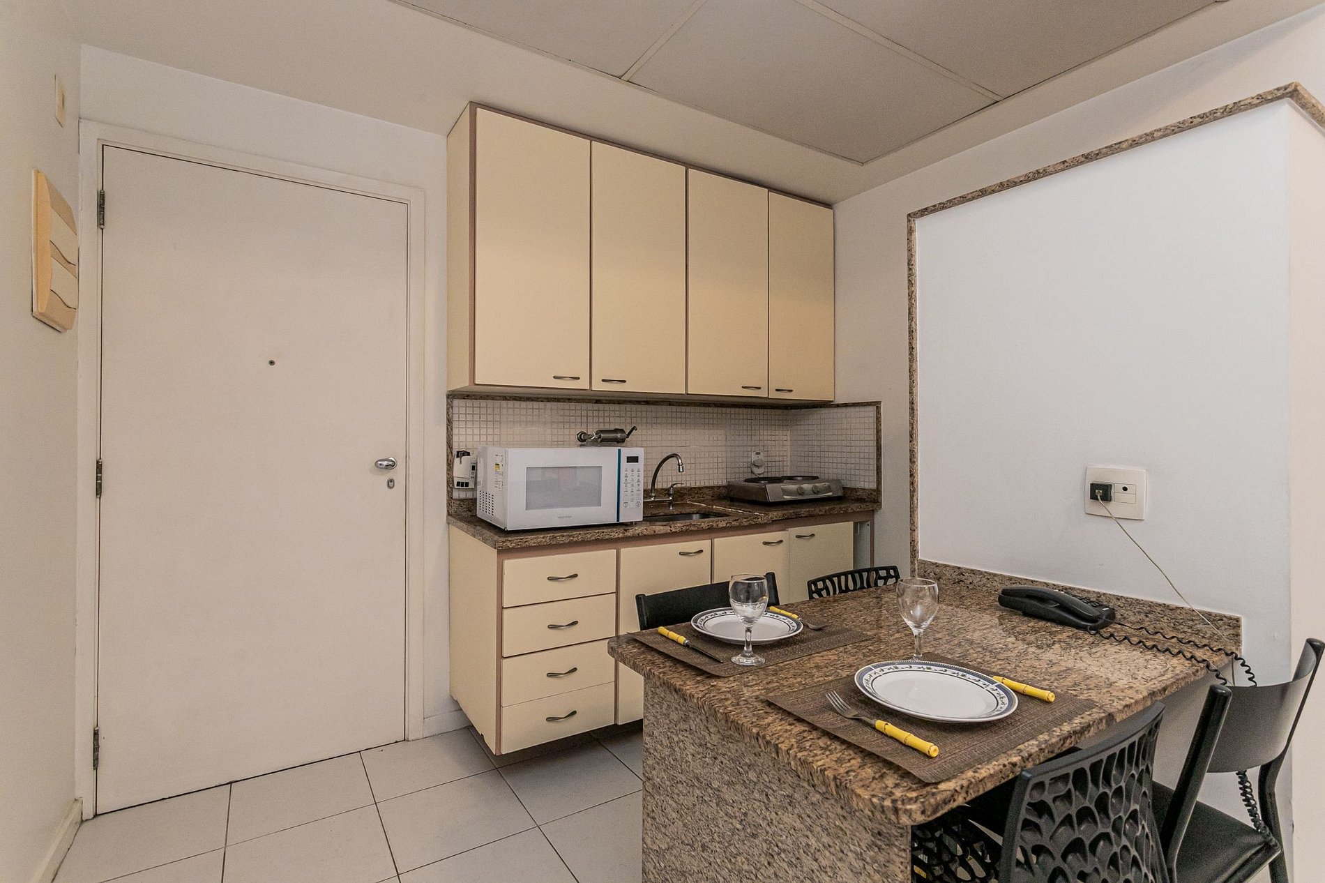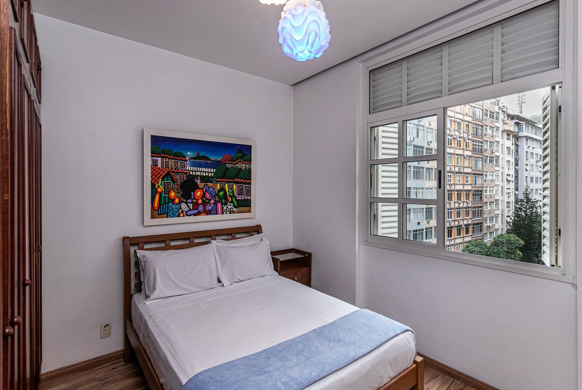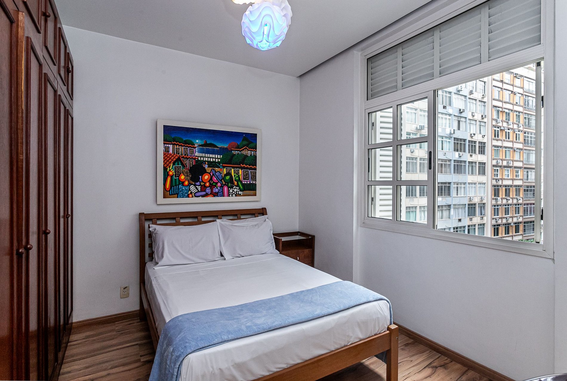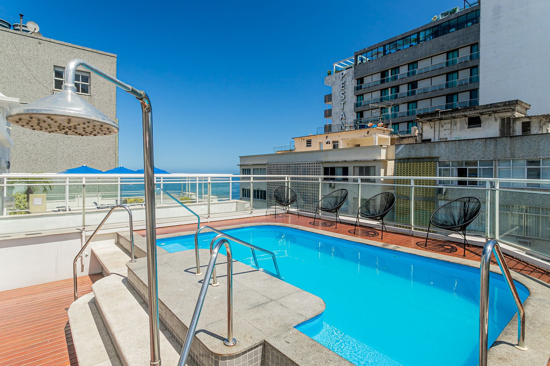 Belo prédio situado a poucos passos da praia de Copacabana, seu calçadão e seus quiosques. Na sua cobertura você terá uma piscina com vista para o oceano, terraço para relaxar e espaço fitness. Além disso, pode contar com arrumação diária do apartamento (exceção de domingos e feriados)