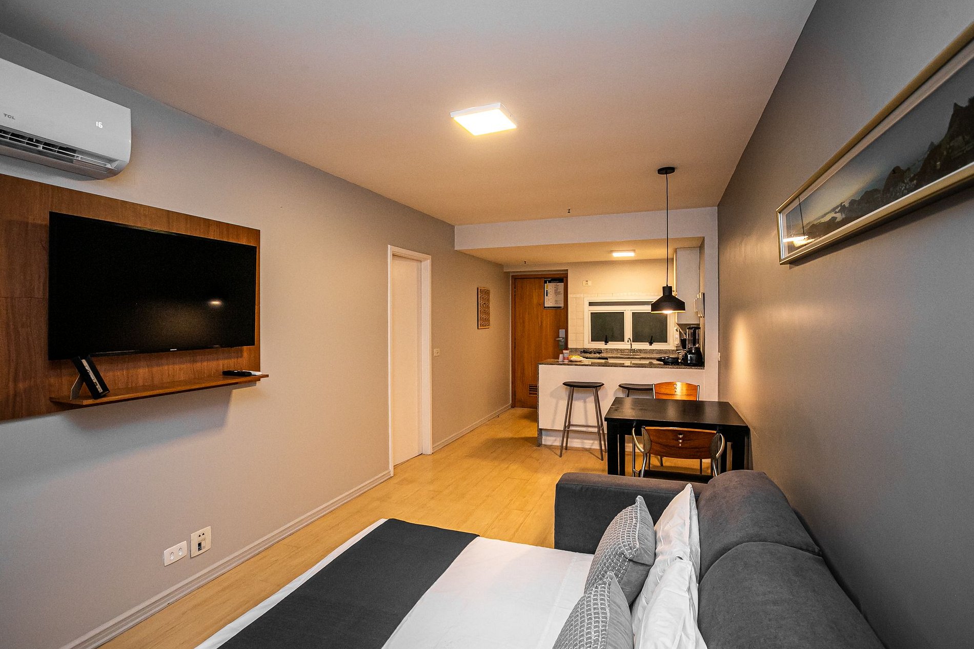 Nossas unidades se localizam em um prédio com toda a infraestrutura de lazer (piscina, sauna, fitness), serviço de arrumação (agendado na recepção), estacionamento, recepção 24 horas e também um mercadinho e uma lavanderia pay per use. você terá todas as comodidades, conforto e segurança em uma localização perfeita!