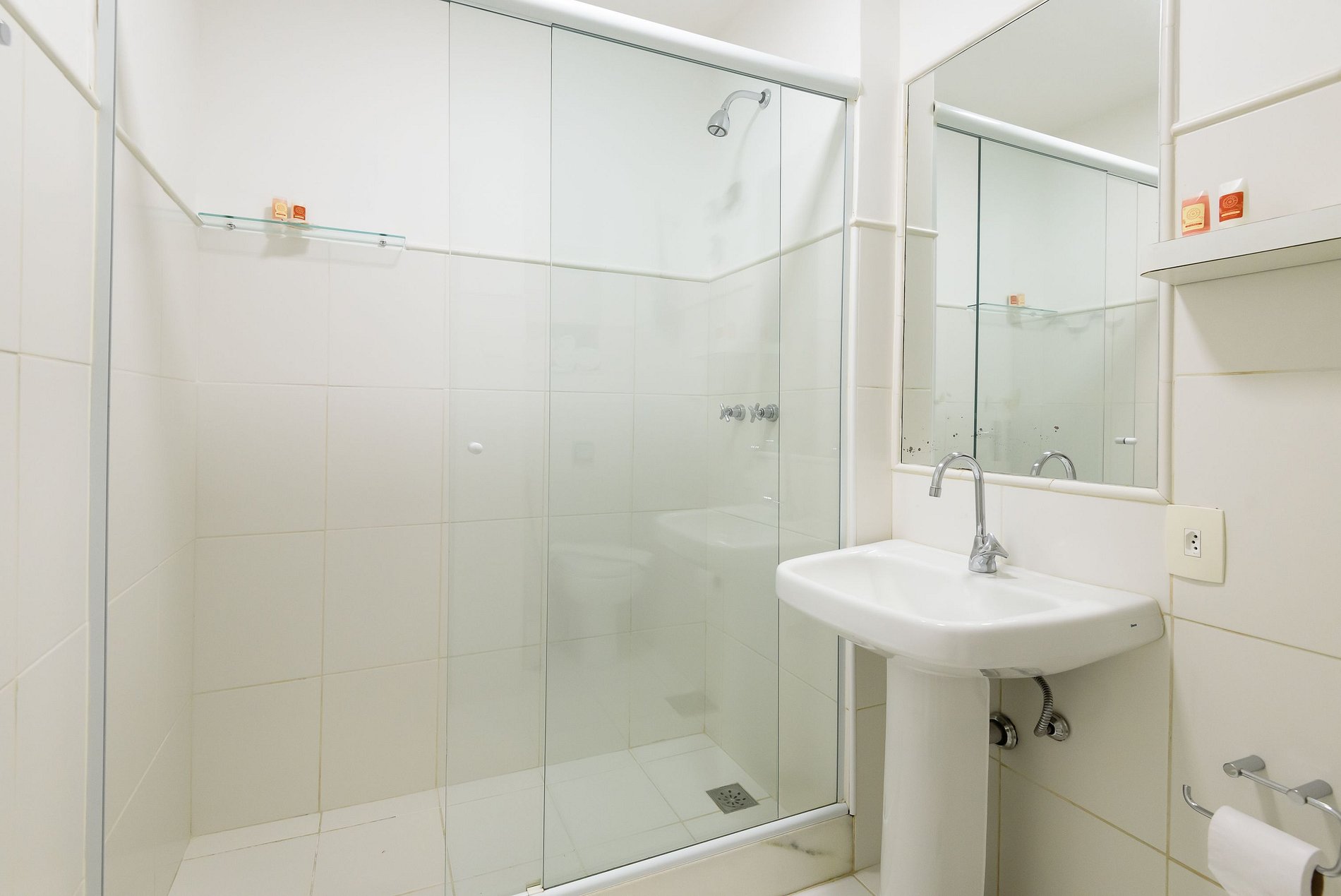 Fornecemos todo o enxoval de cama e banho e a substituição do mesmo, sem custo, a cada 7 dias. Para trocas em períodos mais curtos, cobramos uma taxa extra de R$ 50,00.
