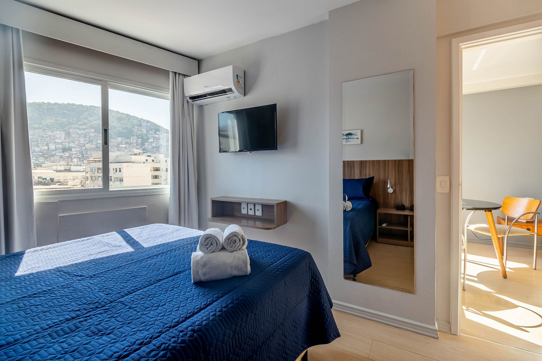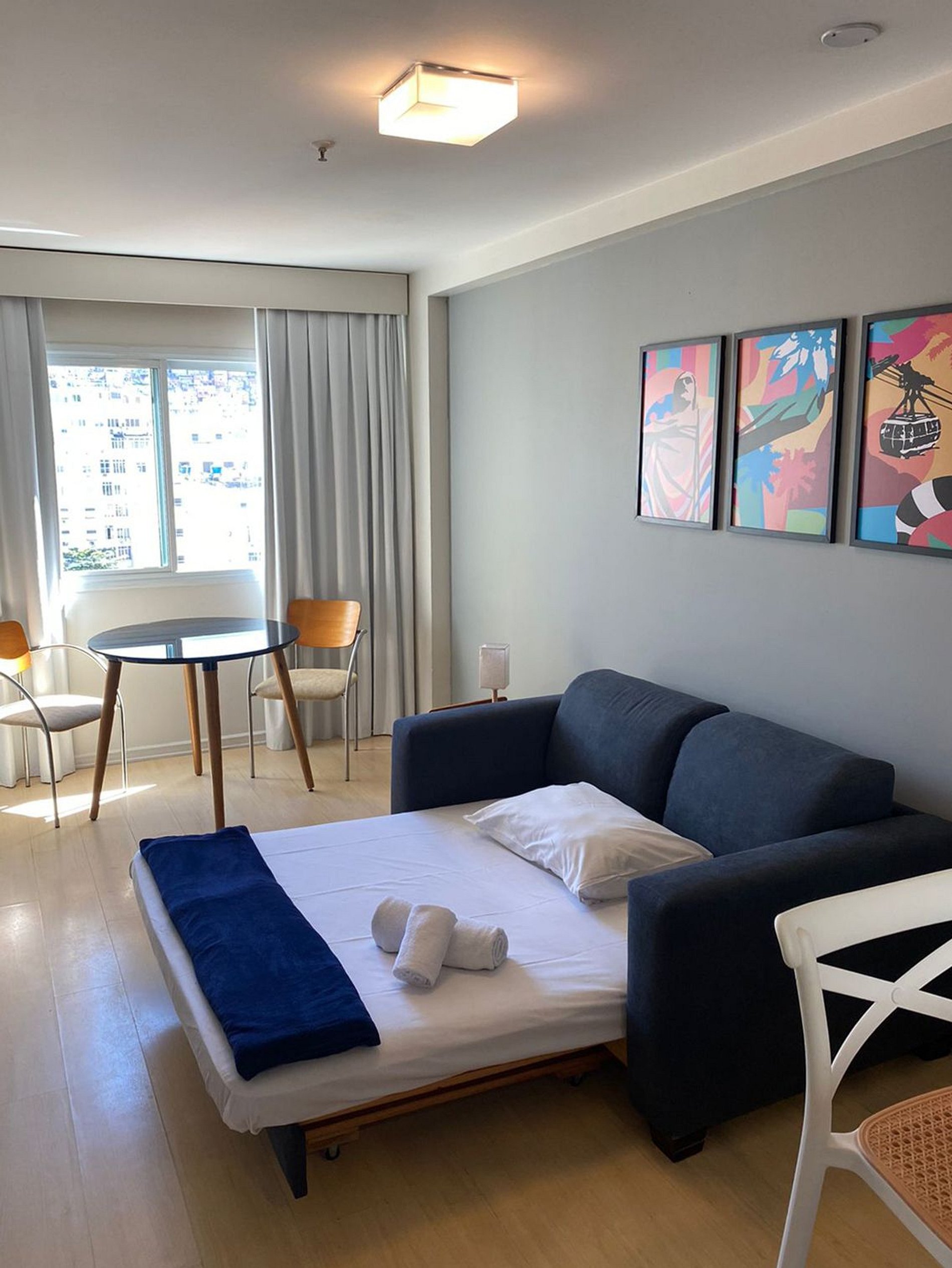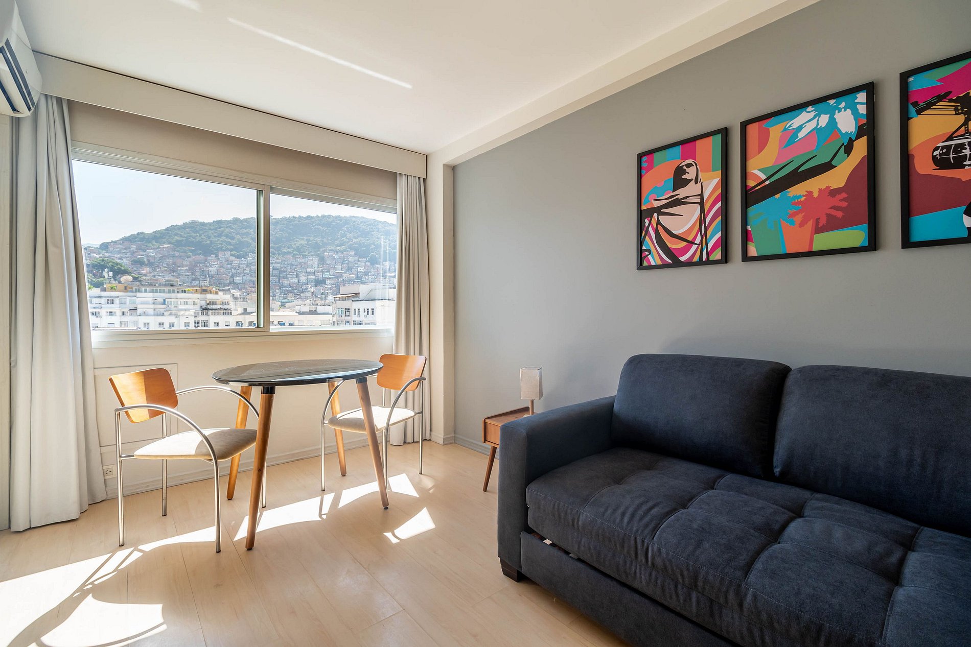 Flat com serviço de arrumação e garagem a 250 m da praia de Ipanema e 500 m da praia de Copacabana. O prédio conta com infraestrutura de lazer, piscina, sauna, fitness, além da comodidade de um mercadinho self service e lavanderia pay per use. Toda a segurança com nossa recepção 24 hs e controle de acesso com biometria facial.