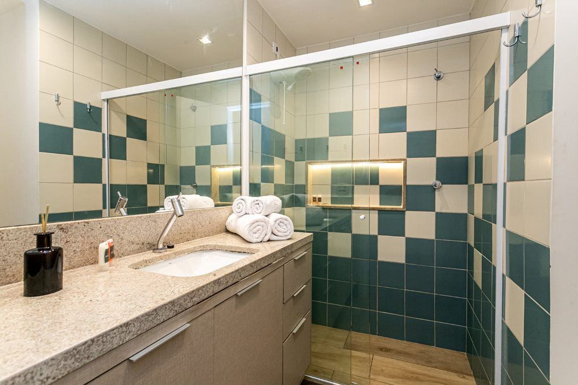 Fornecemos todo o enxoval de cama e banho e a substituição do mesmo, sem custo, a cada 7 dias. Para trocas em períodos mais curtos, cobramos uma taxa extra de R$ 50,00.
