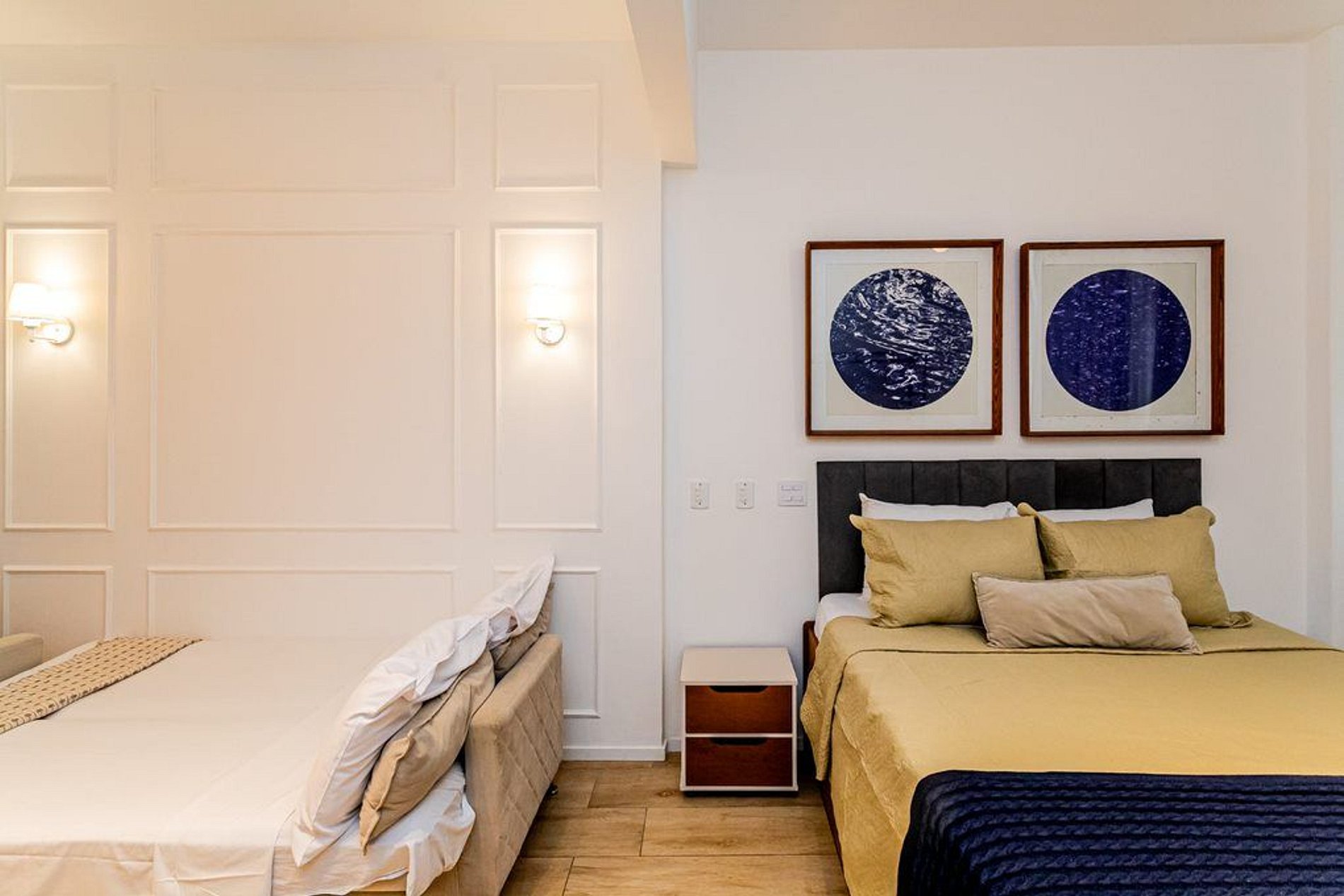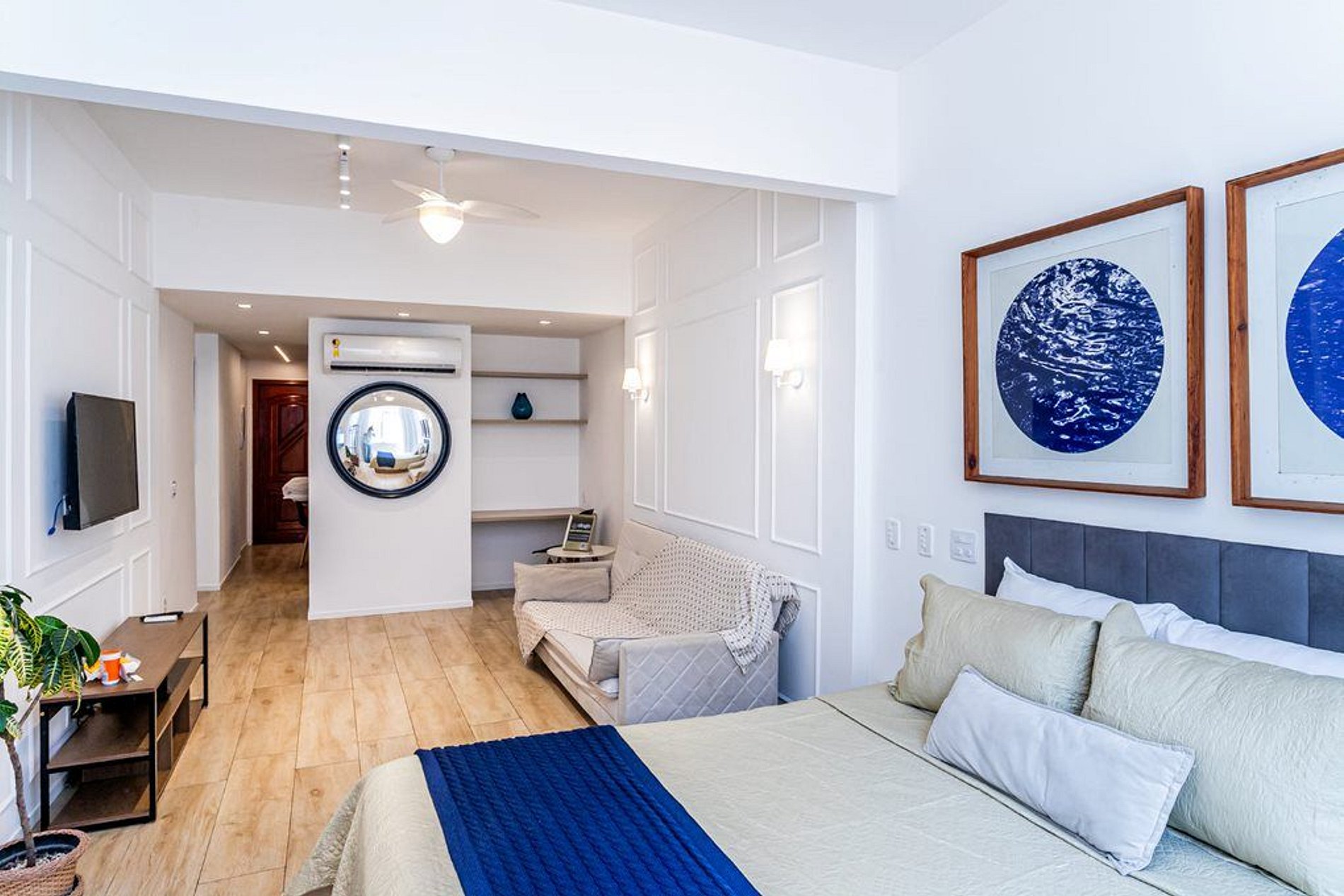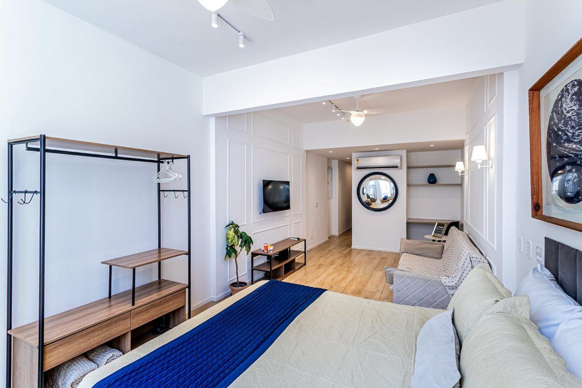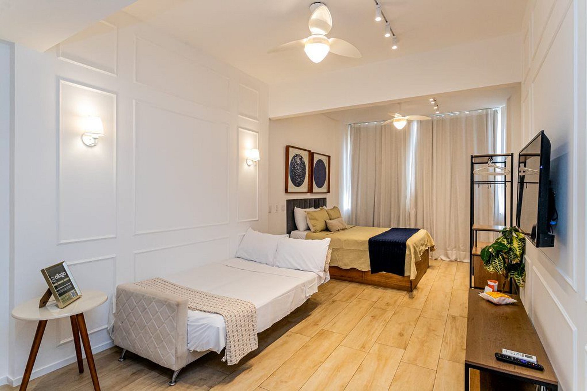O apartamento tem capacidade para 3 hóspedes, sendo 1 (uma) cama Queen e 1 (um) sofá cama.