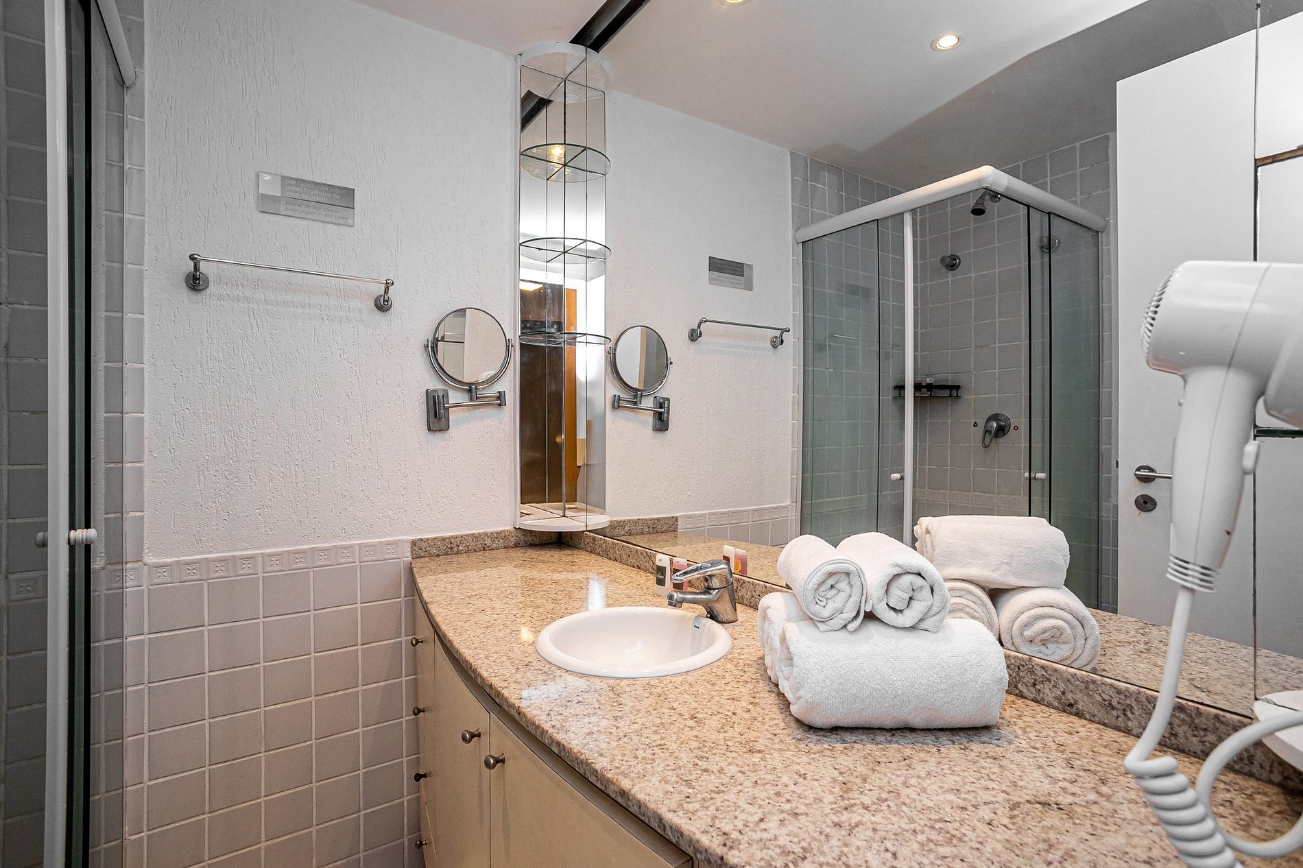 Fornecemos todo o enxoval de cama e banho e a substituição do mesmo a cada 7 dias. Para trocas em períodos mais curtos, cobramos uma taxa extra de R$ 50,00.