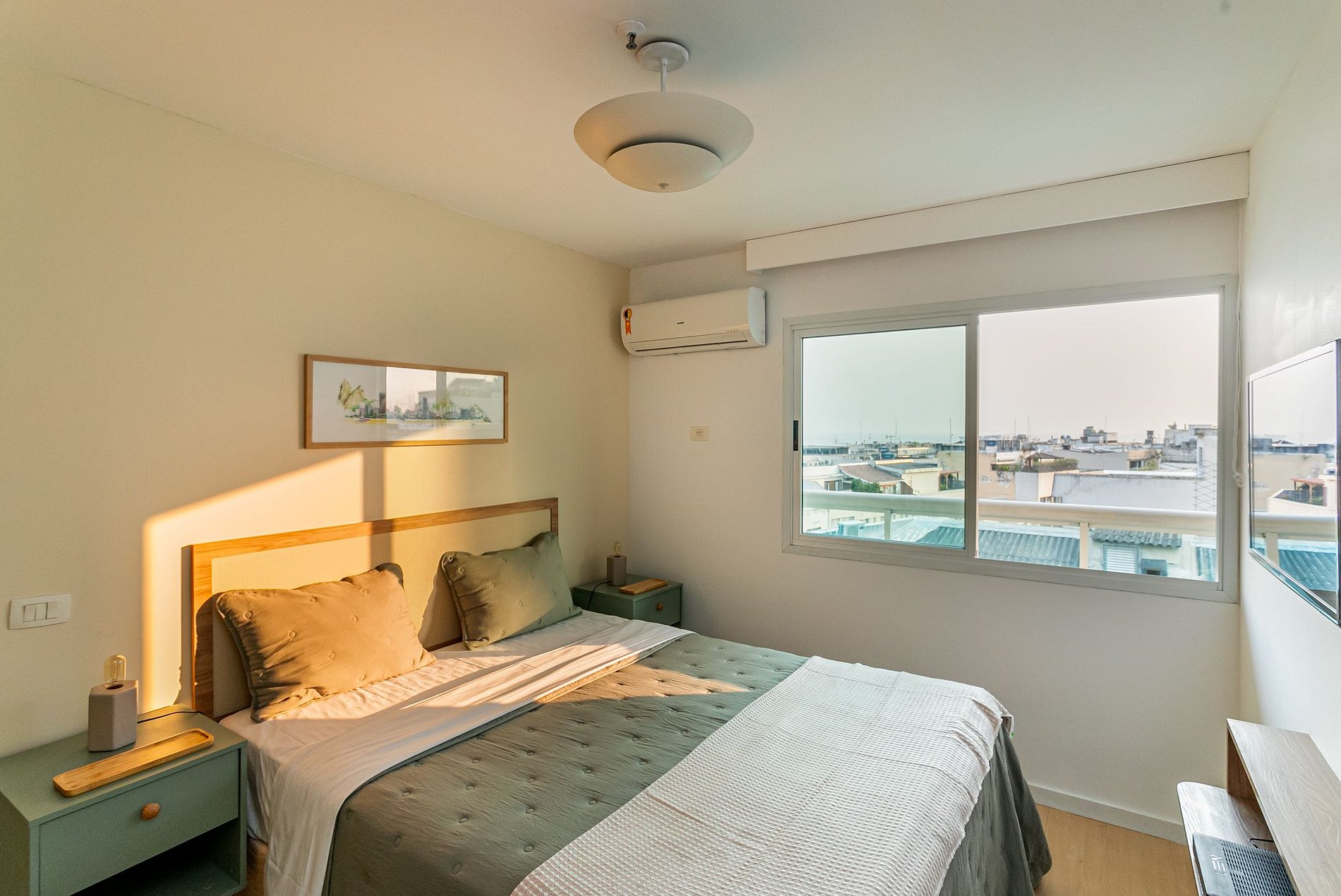 Flat com varanda com vista para o mar, serviço de limpeza e estacionamento para hóspede (1 vaga), entre as praias de Ipanema e Copacabana. O apartamento se situa em um prédio com infra estrutura (piscina, sauna, academia, mercadinho, lavanderia e espaço compartilhado de trabalho), recepção 24 horas, com acesso fácil à todo comércio local, como mercados, restaurantes e lojas, além de transporte público (ônibus e metrô). Ipanema é uma das praias mais conhecidas no mundo e famoso tanto por sua beleza quanto por oferecer todas as facilidades e serviços.