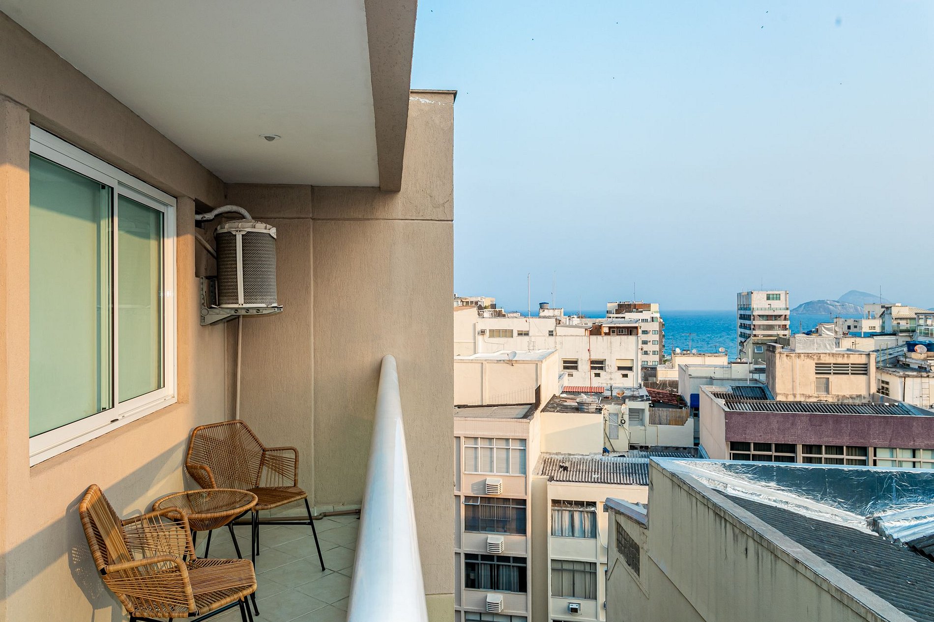Flat com varanda e vista para o mar, recém reformado e decorado por arquiteto. Todo o conforto, serviço de limpeza e estacionamento, entre as praias de Ipanema e Copacabana. Prédio com infra estrutura (piscina, sauna, academia, lavanderia, mercadinho, espaço de trabalho), a apenas 250m da praia de Ipanema e 600m da praia de Copacabana, acesso fácil ao comércio local, mercados, restaurantes e lojas, além de transporte público (ônibus e metrô). Hospede-se próximo às praias mais famosas do Rio