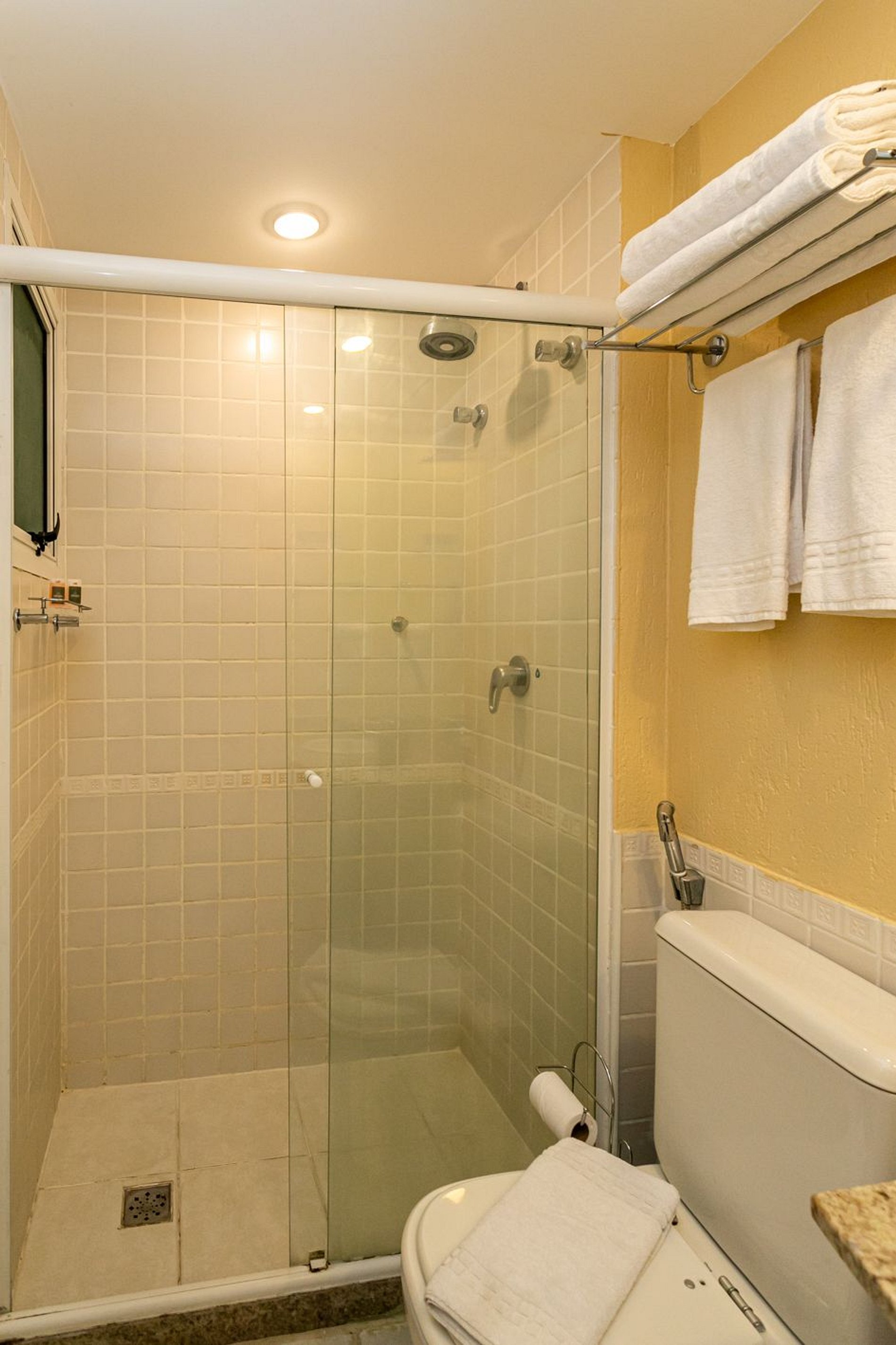 Fornecemos todo o enxoval de cama e banho e a substituição do mesmo a cada 7 dias (deixamos as peças para serem substituídas no apartamento para estadias desta duração ou maior). Para trocas em períodos mais curtos, cobramos uma taxa extra de R$ 50,00.