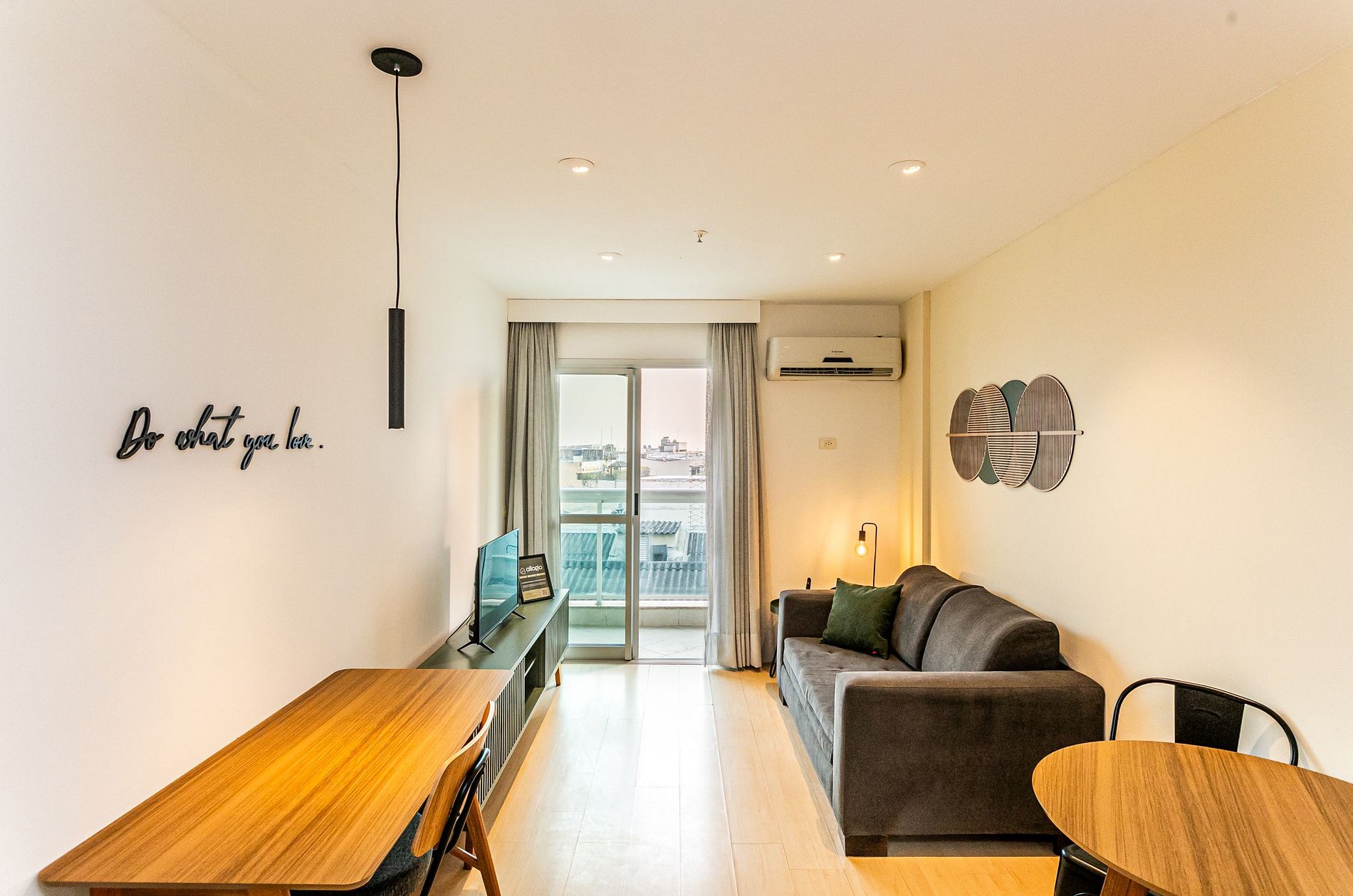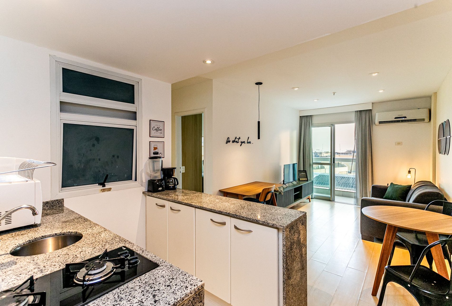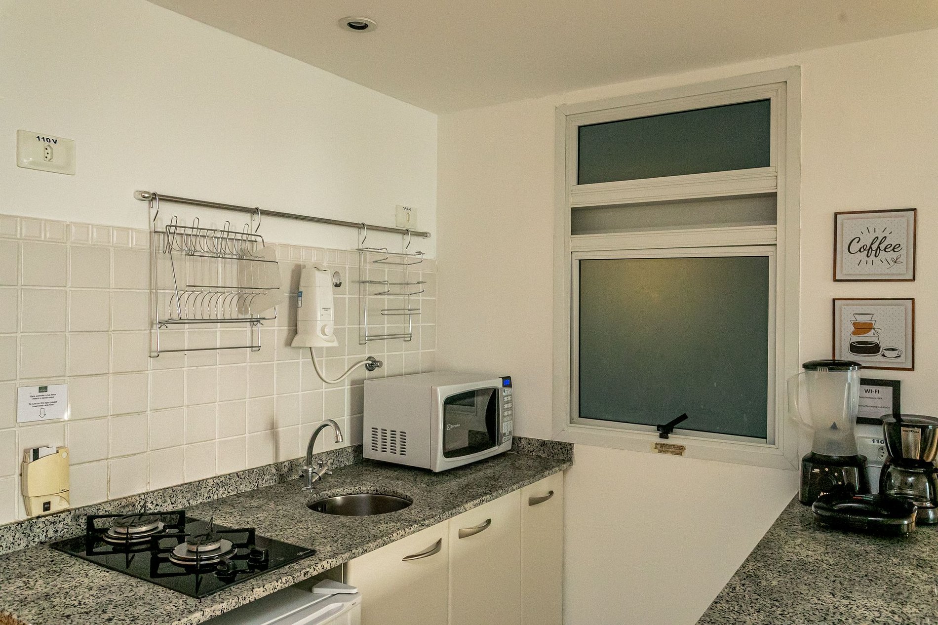 Nossas unidades se localizam em um prédio com toda a infraestrutura de lazer (piscina, sauna, fitness), serviço de arrumação (agendado na recepção), estacionamento, recepção 24 horas e também um mercadinho e uma lavanderia pay per use. você terá todas as comodidades, conforto e segurança em uma localização perfeita!